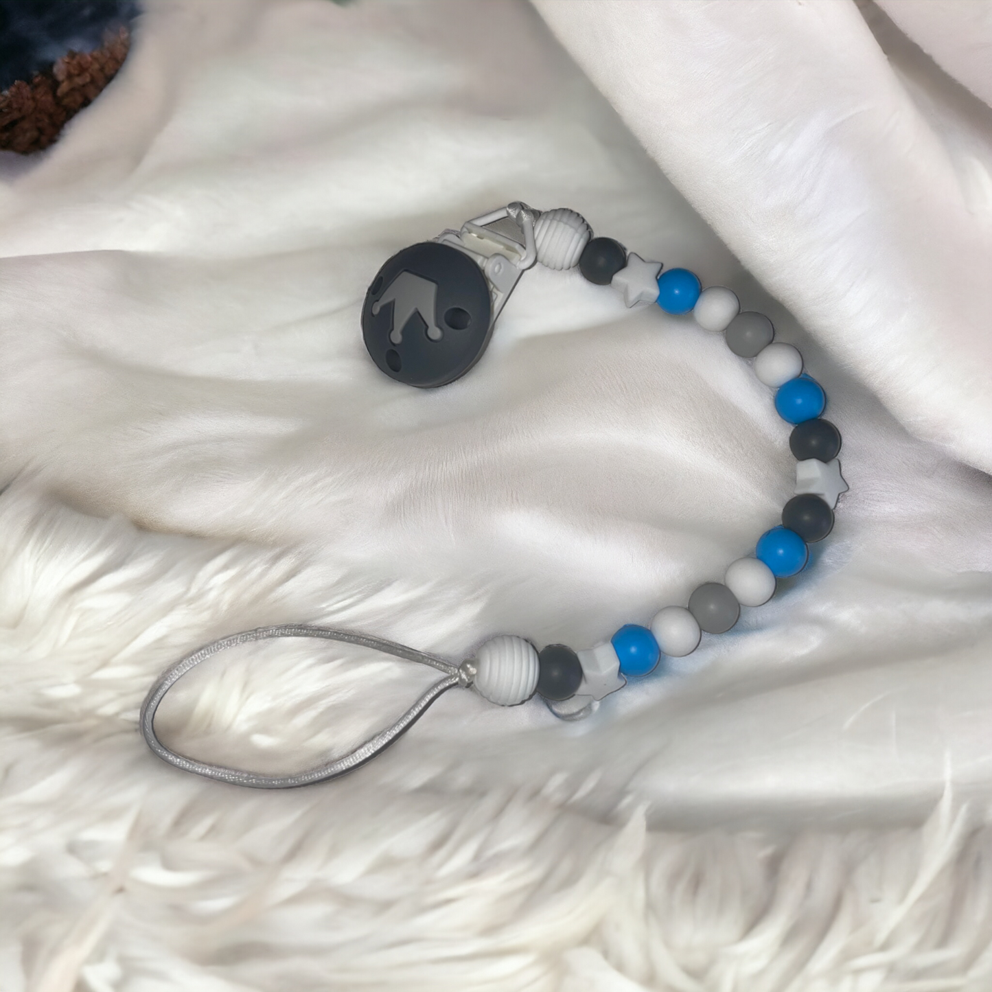 Securely and stylishly keep your baby's pacifier in place with our custom pacifier clip. Personalize it with your little one's name or initials for a unique touch. Say goodbye to lost pacifiers and hello to a happy, content baby!